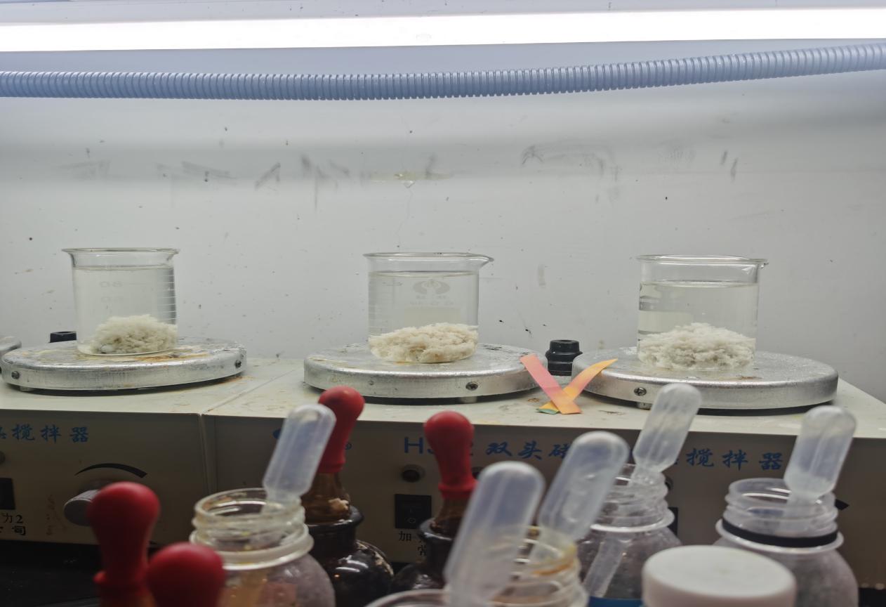 現場連續取樣三天,按照三天所取不用的污水進行1:1:1的比例去混合。取原水100ML,測出PH值為5.8,千分之1.5的25%氫氧化鈉,然后加入千分之一的FQ-WD13破乳劑(該類廢水內含有動植物油所以適用于破乳劑),然后加入1.5%的聚丙烯酰胺陰離子(1‰的水溶液)。