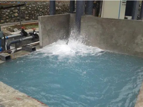 因為廢水中含有大量石粉、殘渣等物質,濁度高,且較難通過自然沉淀進行處理。所以,須使用石材廢水脫色劑等加速絮凝沉淀。石材廢水通過廠區內的管渠收集后,進入調節池,以均質均量,投加脫色劑和助凝劑后,在反應池內反應生成礬花,通過沉淀池的沉淀,大部分懸浮物沉至池底,上清液進入清水池,通過回用水系統進入生產車間回用或達標排放。